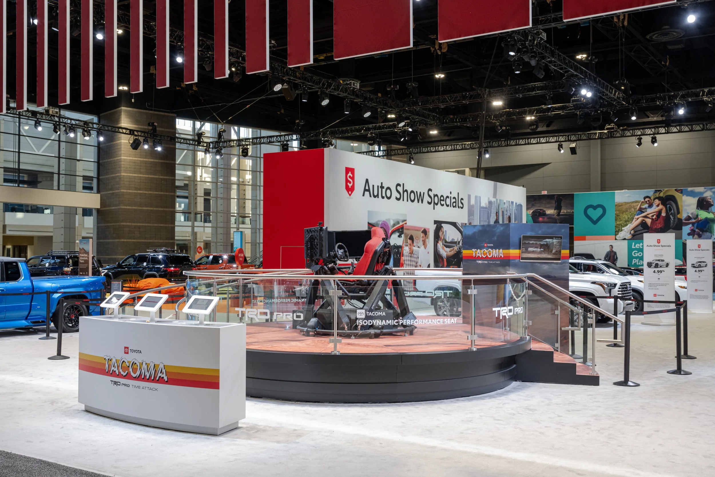 References great part of the blueprint established at the LA Auto Show, with tailored zone delineations reflecting diverse lifestyles and needs across vehicle categories. From the performance spirit of the GR Zone to the family focus of the SUV Zone, each embodies a unique narrative and color scheme, empowering customers with choice. Additionally, we introduced engaging experiences, such as a simulator showcasing the new Iso Dynamic seats in the 2024 Tacoma, and an NFL corner celebrating Toyota’s partnership with the National Football League.